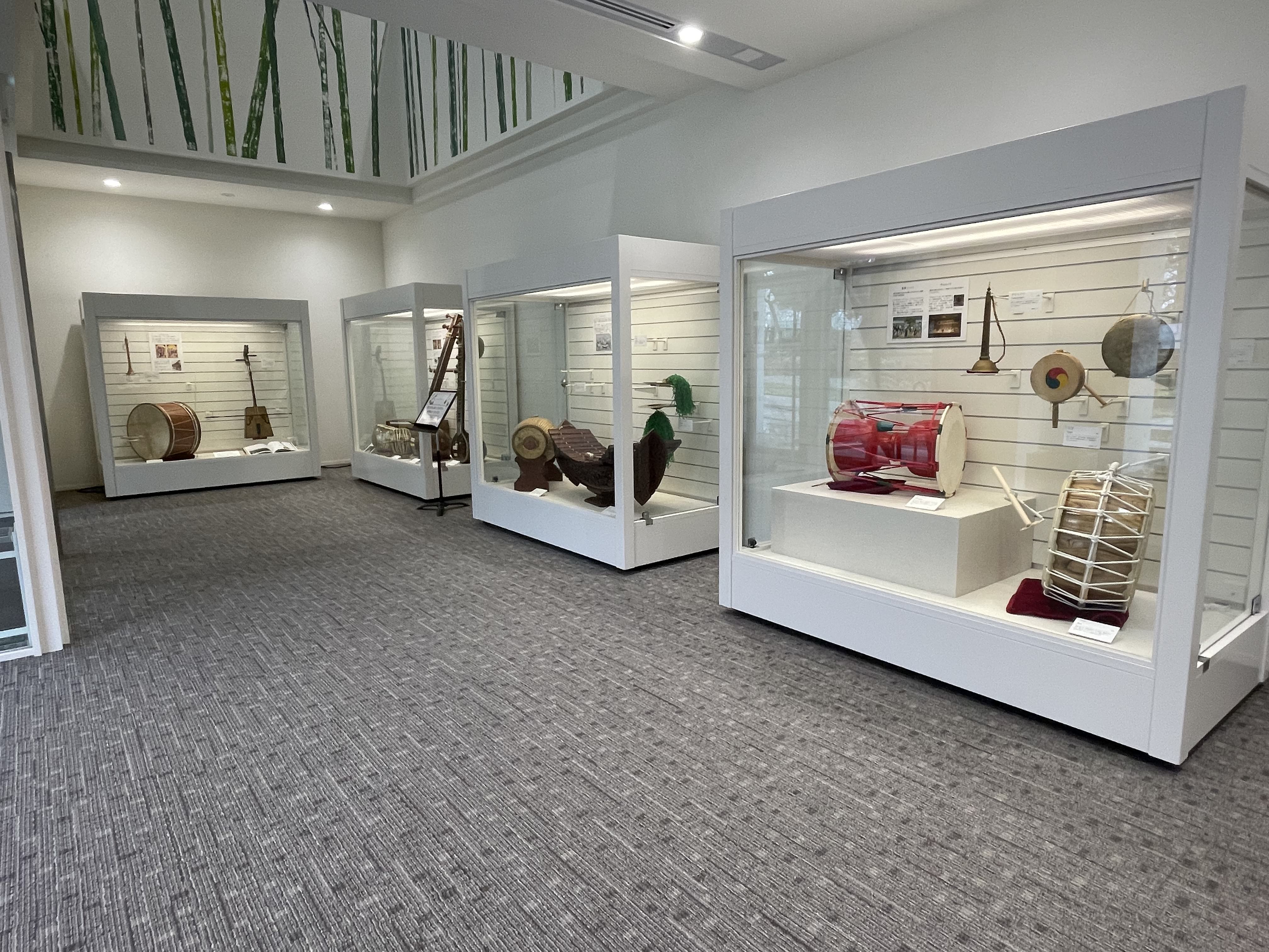 2025年度のラウンジ展示のテーマは「音大生なら知っておきたい世界のアンサンブル」です。楽器の名称や製作地に加え、教員採用試験でもよく取り上げられる音楽ジャンルや様式を紹介します。たとえば、「カッワーリー(歌と器楽演奏によるイスラム教の宗教音楽)」や「ノンアク(韓国の農作行事で行われる合奏)」など、世界の多彩な合奏形態にスポットを当て、それぞれの演奏を共にする楽器や演奏される場面について紹介します。音楽の多様性を実感できる展示を目指しておりますので、ぜひご見学にいらしてください!