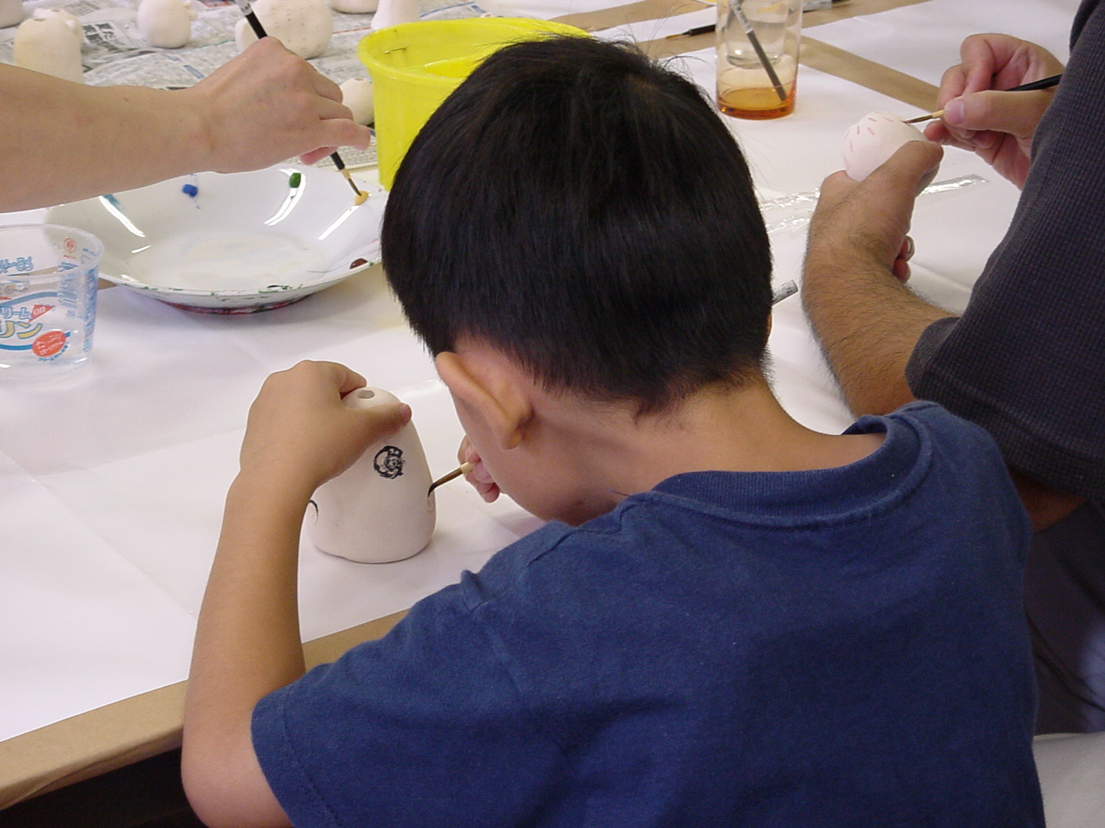 展示室で世界の管楽器の音が出る仕組みを学んだ後、美術室で楽器を製作。